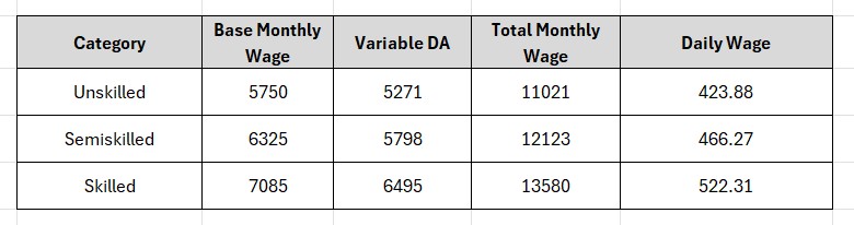 The revised wages apply to unskilled, semi-skilled, and skilled workers across sectors such as manufacturing, healthcare, education, hospitality, and construction. For example, an unskilled worker who previously earned ₹5750 as basic wage will now receive ₹5271 as VDA, resulting in a total monthly wage of ₹11,021. Similarly, semi-skilled and skilled workers will earn ₹12,123 and ₹13,580 per month respectively. These changes are mandatory for all registered establishments under the scheduled employments, including coaching centers, hospitals, petrol pumps, IT firms, dairies, and brick kilns.